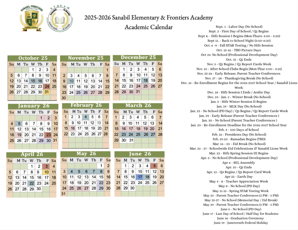 Sanabil Elementary and Middle School Calendar